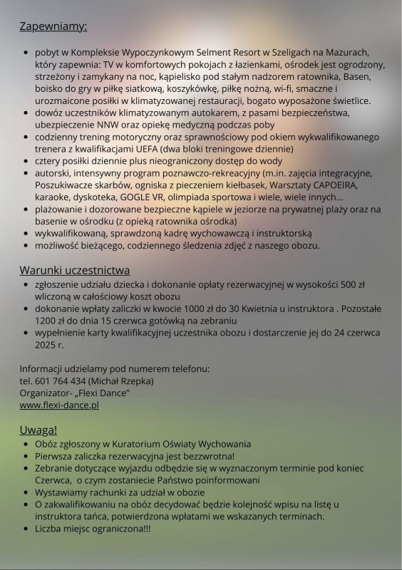 I taneczny i piłkarski, termin 13-21.07.2025 r
